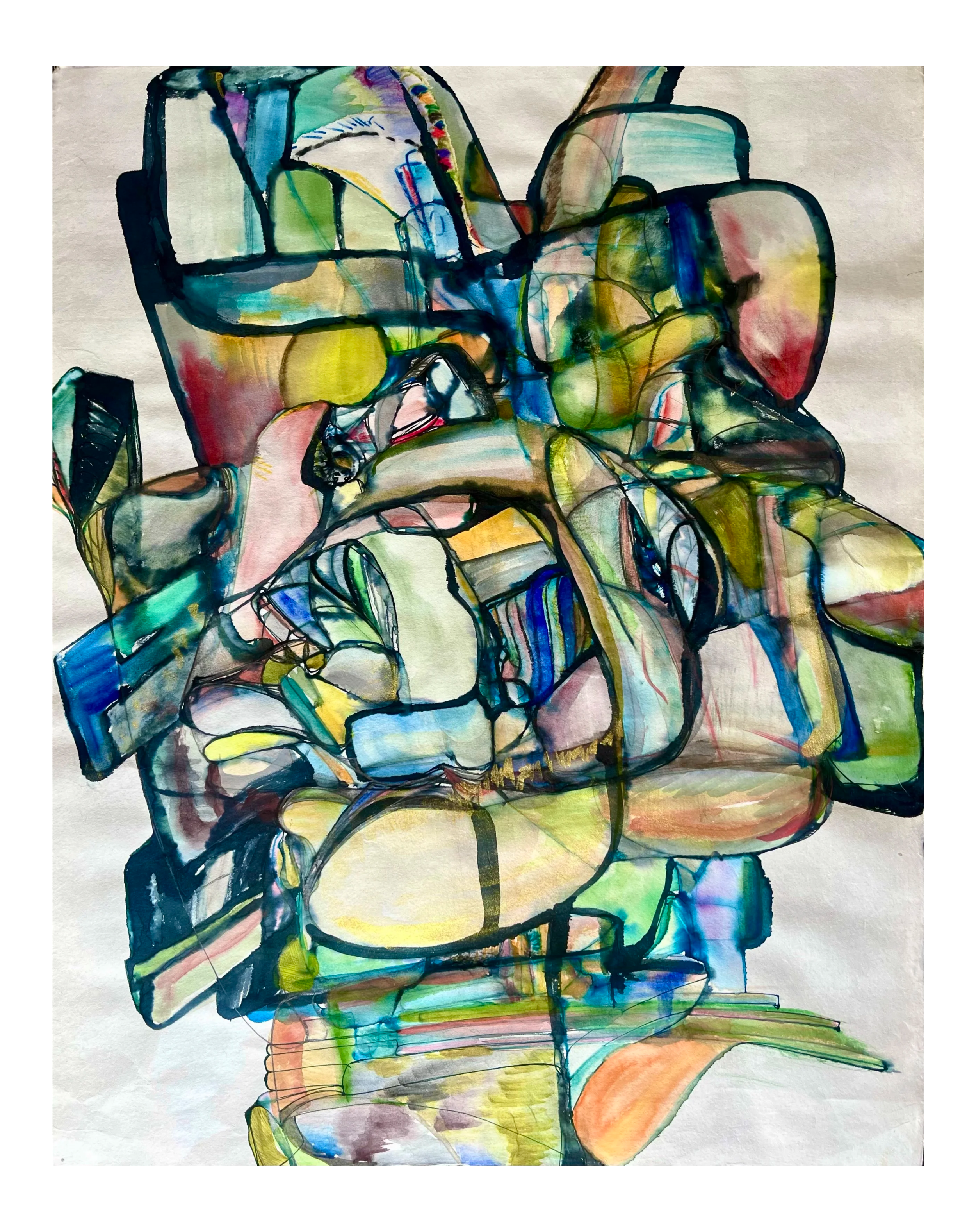 Watercolors, Ink and pencils on Hanji (Korean traditional handmade paper) (24x35 3/4 inches)